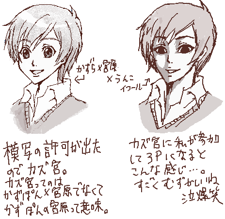 なので頑張ってカズ宮を自分風にかかせていただきました!